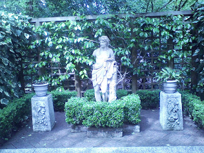 | There are some very impressive topiary sculptures at Lakewold Gardens, including this duck or swan and a lovely nesting hen behind it. |