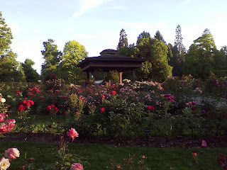 The Point Defiance Rose Garden is very large and very lush. The roses are planted in concentric circles around a lovely pergola. Of course, the whole garden is also surrounded by fencing to keep the deer from eating it all up. Besides the gorgeous rose garden, there is a miniature rose garden, a climbing rose arbor (a rather long one with gates on each end, a dahlia garden, and a beautiful walk with hydrangeas and lots of hug big-leafed jungle looking plants. Below are some phones of the Rose Garden, including an image of a painting done by my beautiful daughter. I’ll try to post more pictures later.