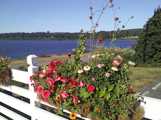 Port Gamble is a restored village on Hood Canal; a National Historic site that dates back to the 1850s. [ http://www.visitkitsap.com/cities.asp?ID=3] There are beautiful New England-style houses and businesses and a wide-open expanse of grass have made this the site of many fairs, celebrations, and weddings. One could shop for unique gifts and nautical items, but it is a wonderful place to walk for exercise, too. I visited in mid-August and the gardens were just beautiful. See for yourself: