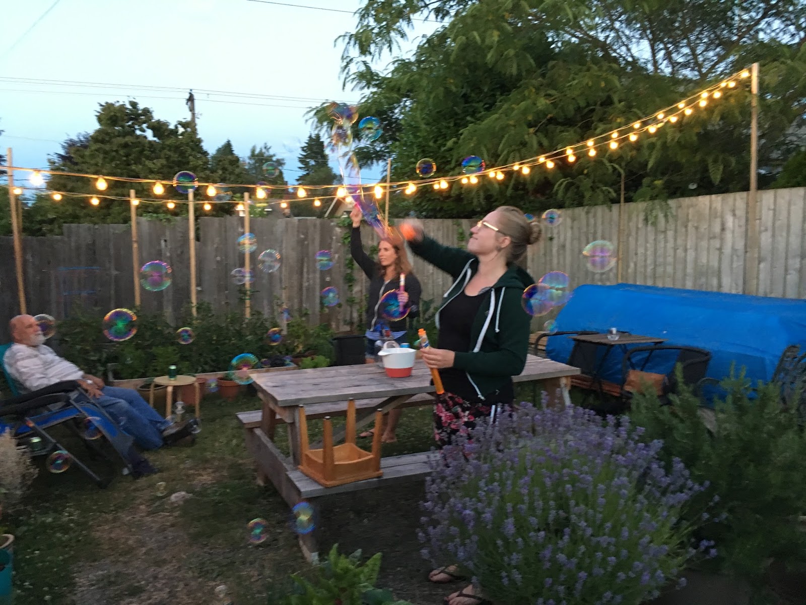 The Fourth was wonderful, even with a mangled toe. We spent it at a cookout and 4th of July party at our daughter’s house. The people were friendly and there were fairy lights strung across the yard, giving it a happy glow. The hamburgers tasted so good and it was great to spend just a little more time with Meghan, Aram, their friends, and Aram’s family.