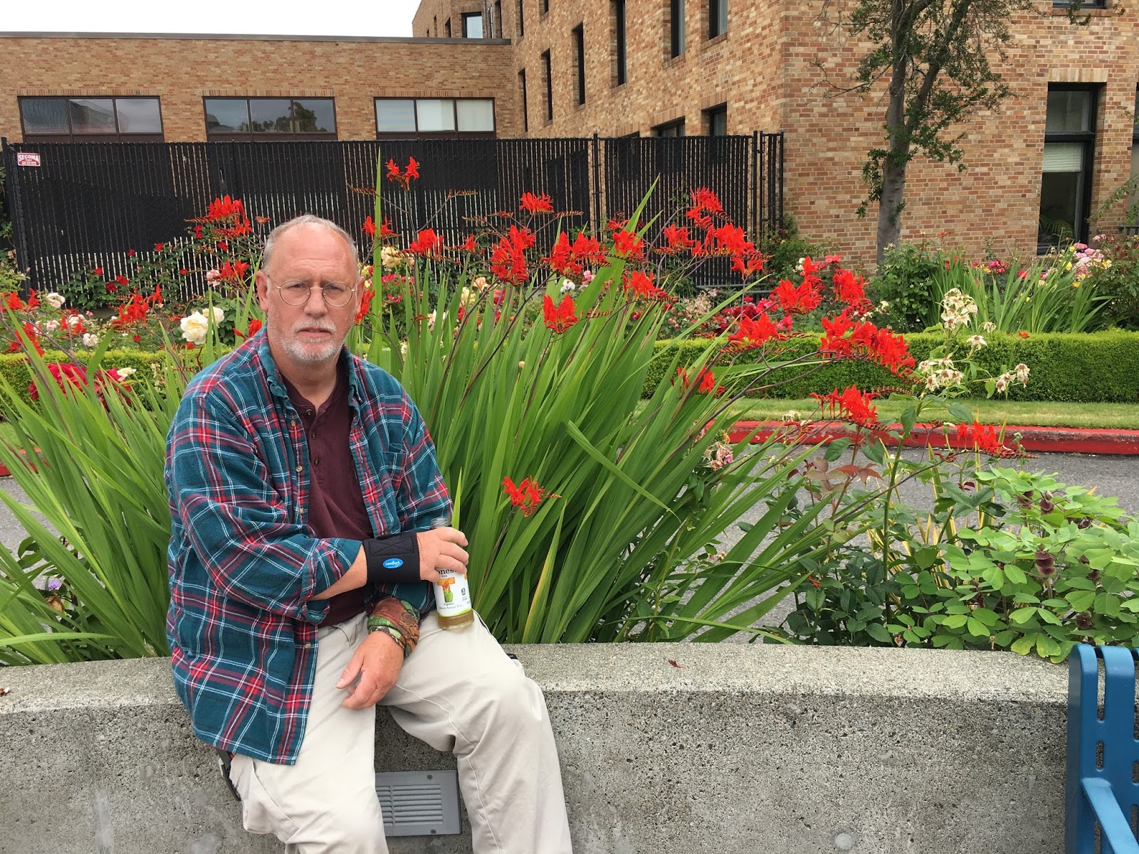 | Himself across from the rose garden he tended at Mary Bridge/Tacoma General Hospital in Tacoma. |