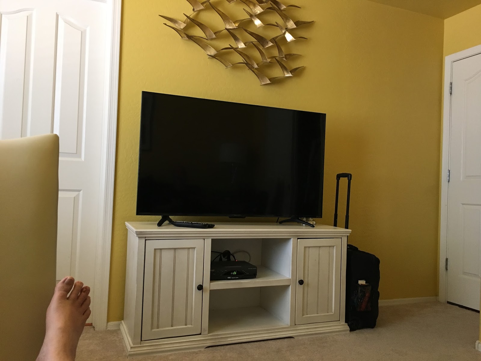 We are now settled into a very nice AirBnb in Phoenix for the next month. We have three rooms: a bedroom with two queen beds (I feel like the Mad Hatter, “on to the next bed”), a large connecting bathroom, and a really nice, carpeted TV room/office with a foldout sofa and a huge TV (2, actually, one in each room) with cable and Roku (hog heaven). I think we’ll be able to manage. 🙂