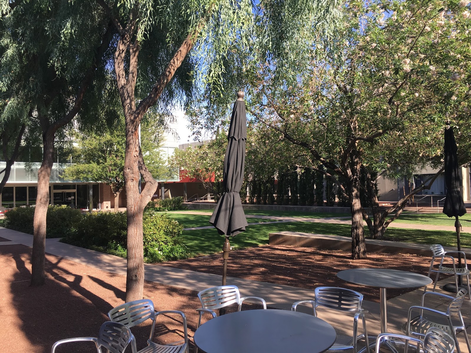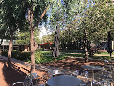 | After Mark and I looked unsuccessfully for Steve, we said goodbye and my brother left for home A short while later, I found Steve at the restaurant’s outside seating ensconced at a shady table. The temperature was a balmy 103 degrees, but what a gorgeous courtyard. |