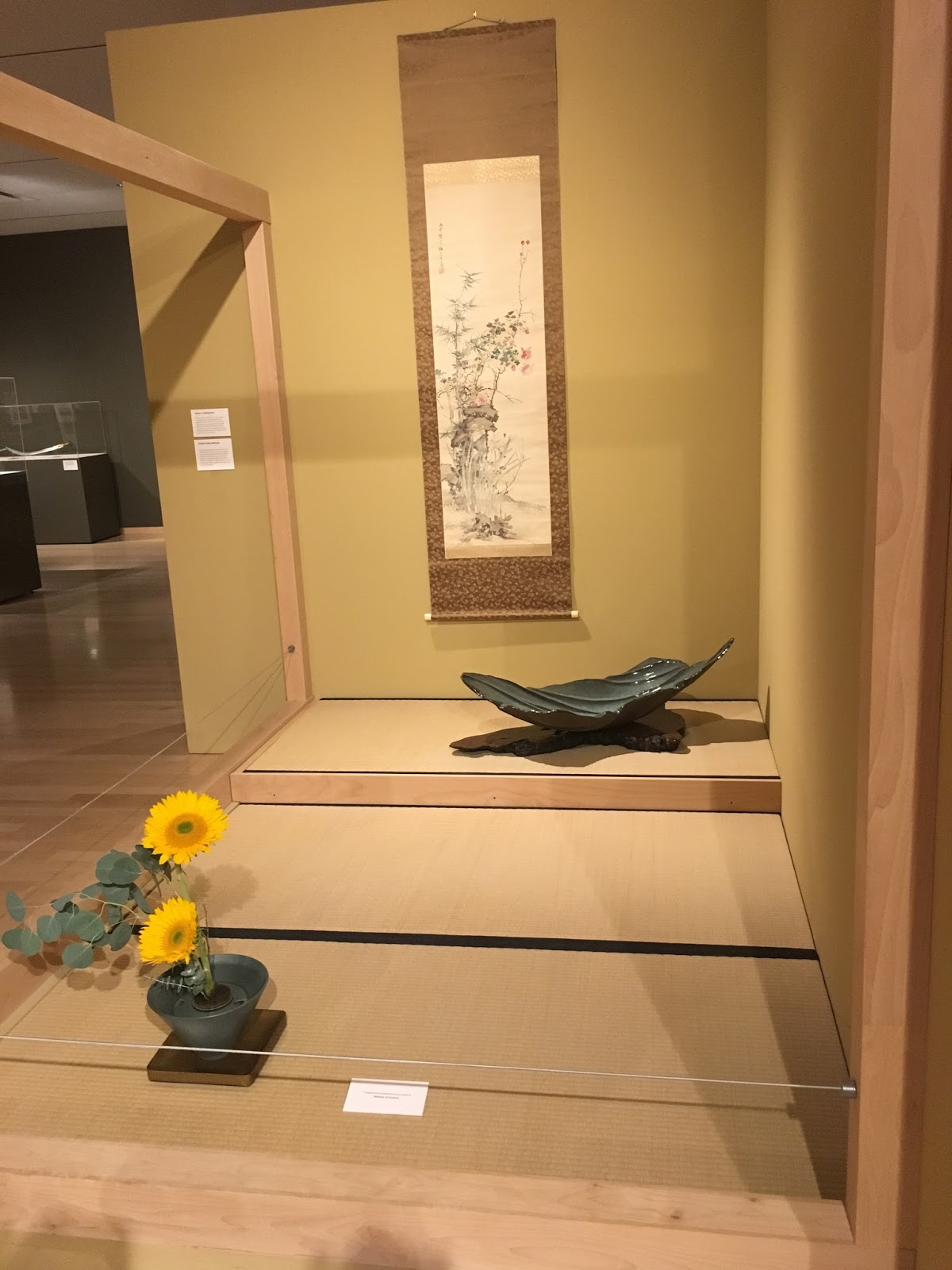 | The fresh flowers are Ikebana that are replaced regularly. |