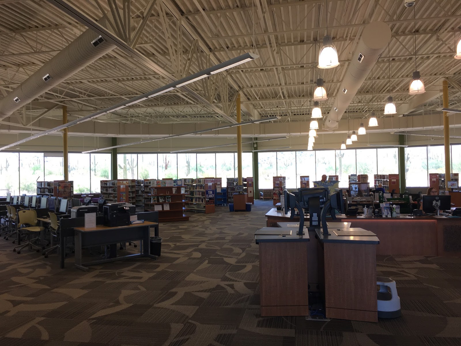 My librarian friends may enjoy the views from inside the library. They have the most saguaros I’ve seen since we arrived. Here is White Tank Branch Library.