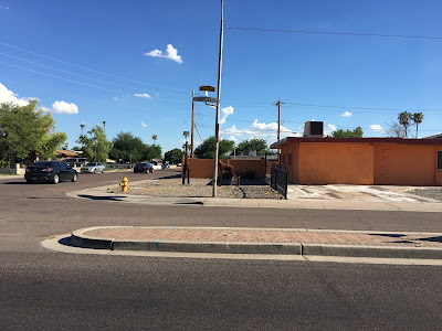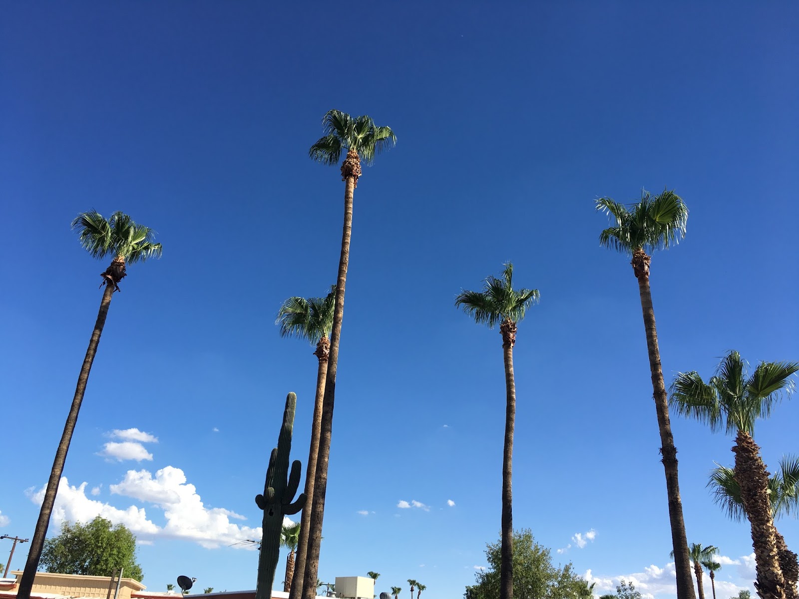 Today, after lazing around the suite until obscenely late, we went out to grab something to eat and explore, but found that our car air conditioning wouldn’t come on. Yes, that is a problem when it’s 107 degrees outside. [At least we don’t have unhealthy wildfire smoke filling air like the Pacific North West.] This season seems to be like deep winter in the Midwest. You don’t send your kids out to play alone in these temperatures. Here they can drop from heat exhaustion and in Minnesota they can drop from the freezing temps. I look forward to enjoying the more temperate weather of fall and winter here in Arizona.
