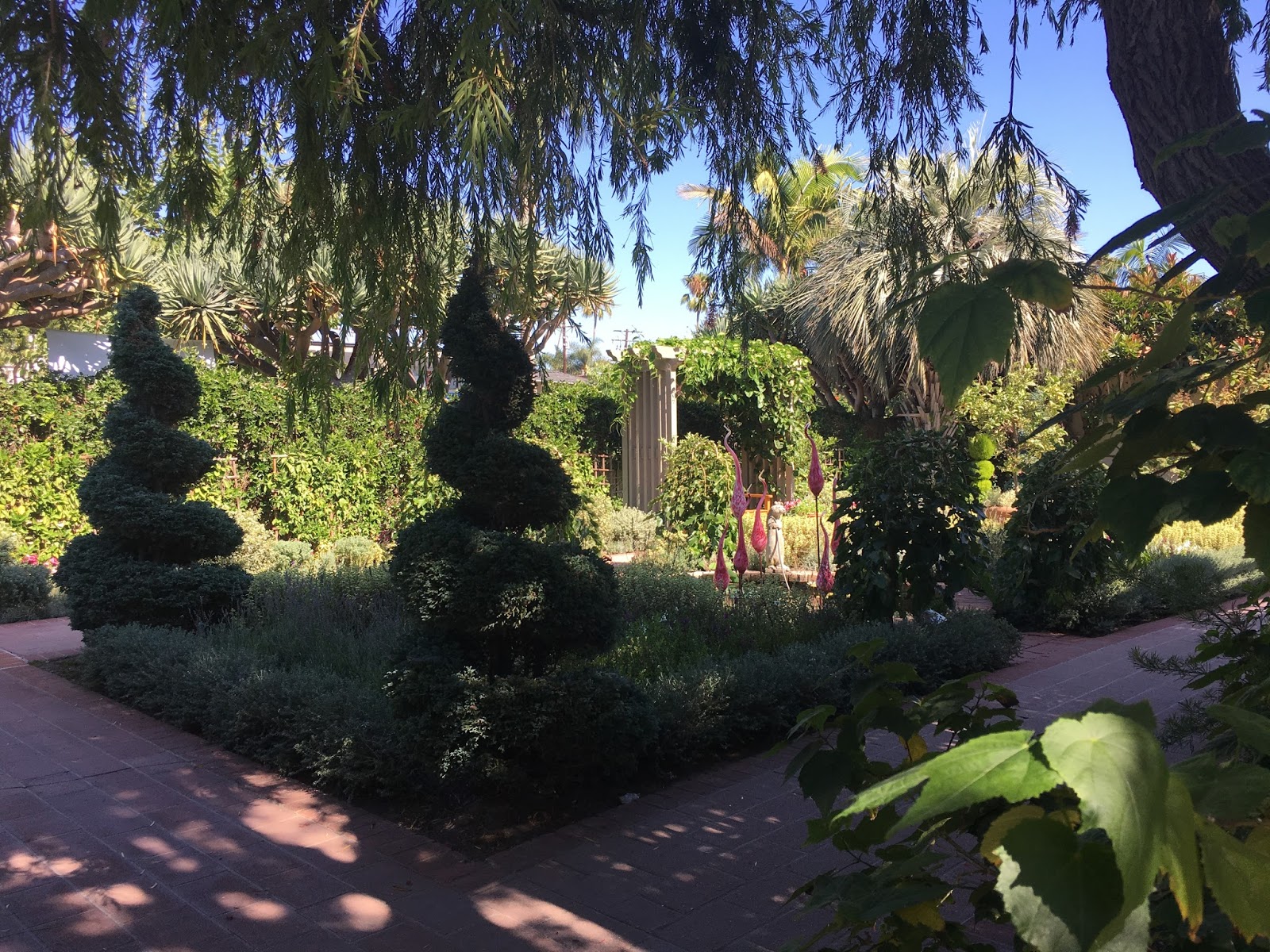 Just by chance we stopped so I could take a picture of a beautiful tree with orange Bird of Paradise plants below it and stumbled upon the Sherman Library and Gardens in Corona del Mar, California. I mean, really, what librarian could possibly pass up that tantalizing sign? I ask you.