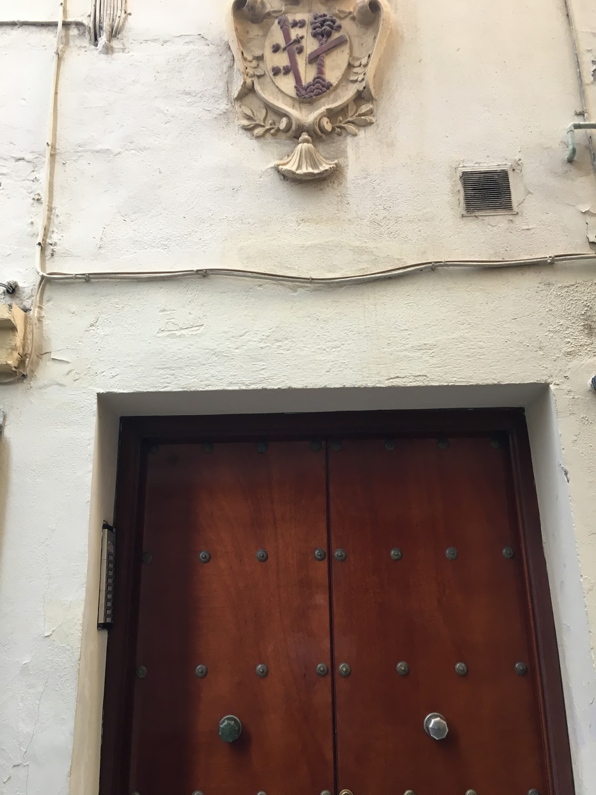 | The door to our AirBnb apartment, which opens to a typical marble floored hall and a central marble courtyard that is open to the sky. Our apts in Madrid and Seville were the same way – very old and beautifully done. |