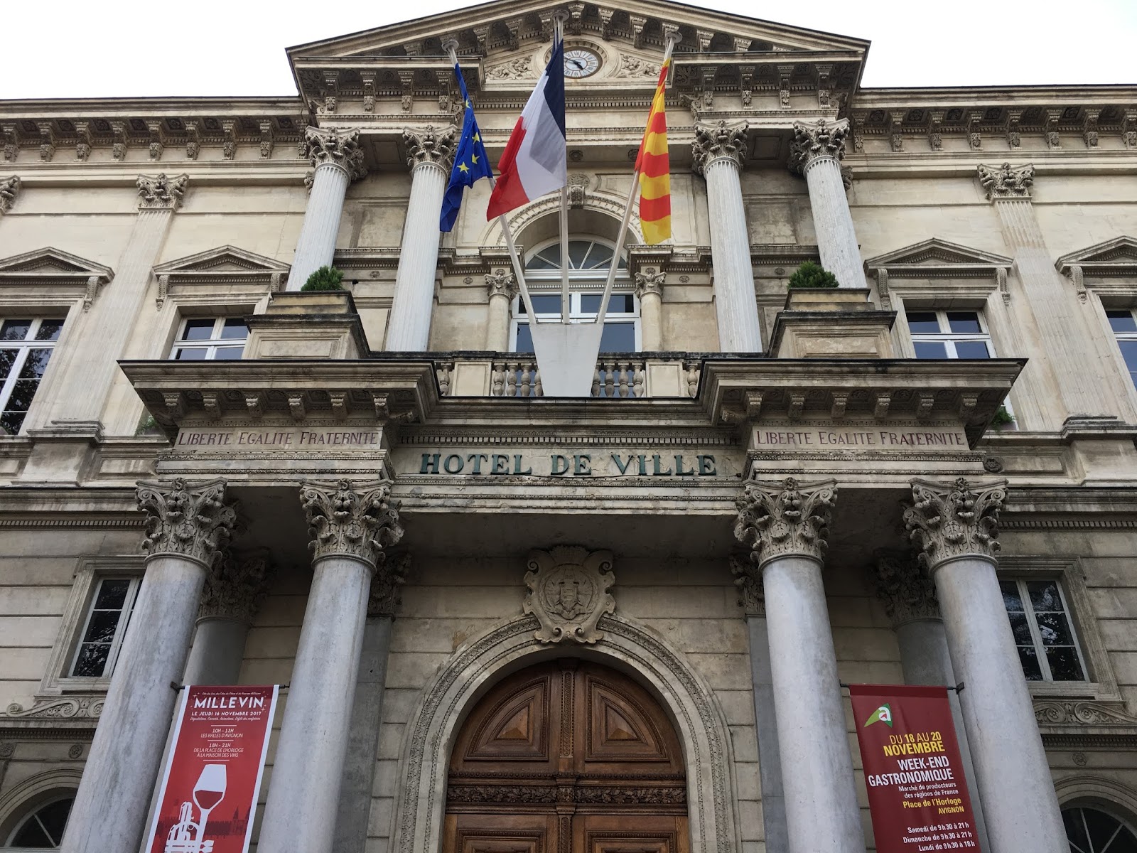 | The municipal building (Hotel de Ville) flying the French and Catalan flags |
